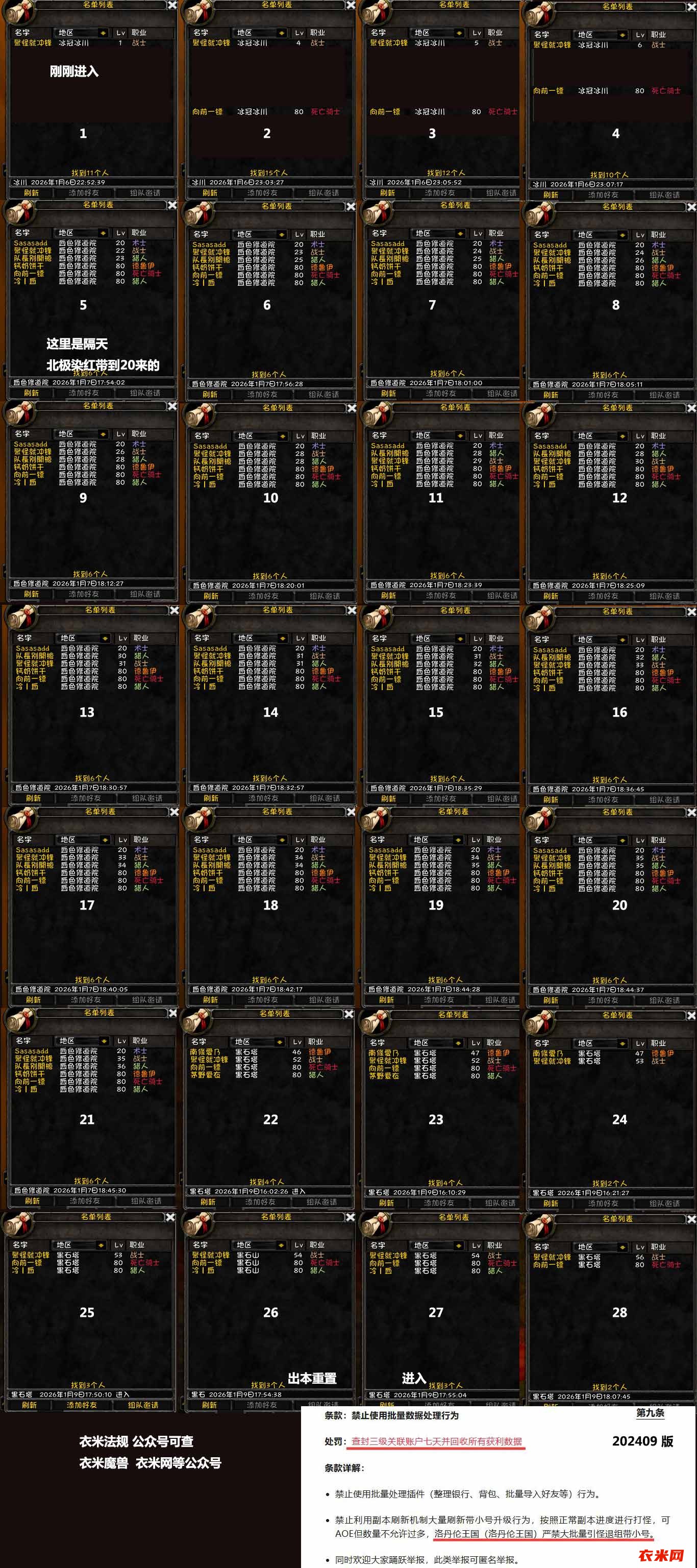 ( u* L U0 x+ b4 G% Y. q+ C- @' k. s根据衣米法规(202409版)第九条规定 洛丹伦王国(洛丹伦王国)严禁大批量引怪退组带小号(上传的图里面可以查看 最新规定我们也会实时检查)。! j& c2 D) K% m+ F, t$ b