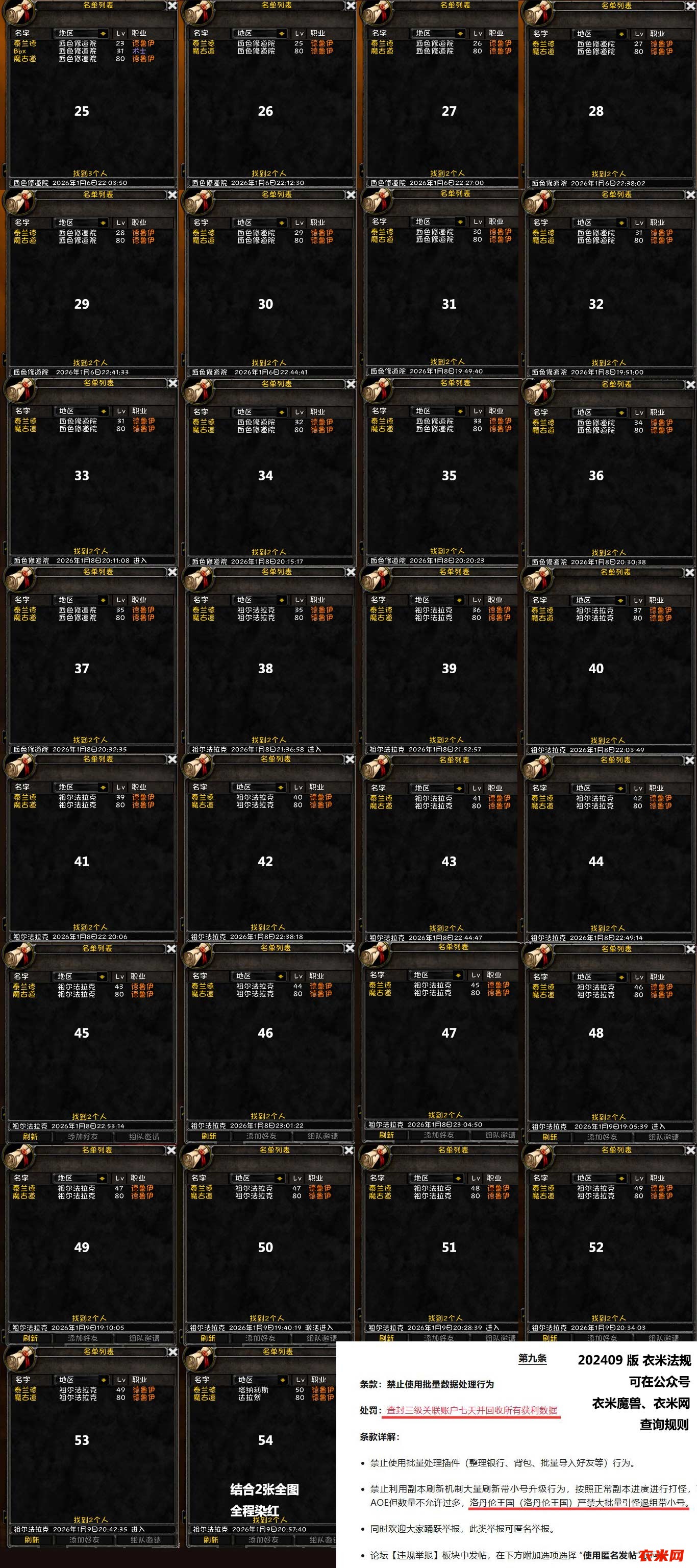 6 |. U k0 g( E1 H, _9 e. h根据衣米法规(202409版)第九条规定 洛丹伦王国(洛丹伦王国)严禁大批量引怪退组带小号(上传的图里面可以查看 最新规定我们也会实时检查)。
